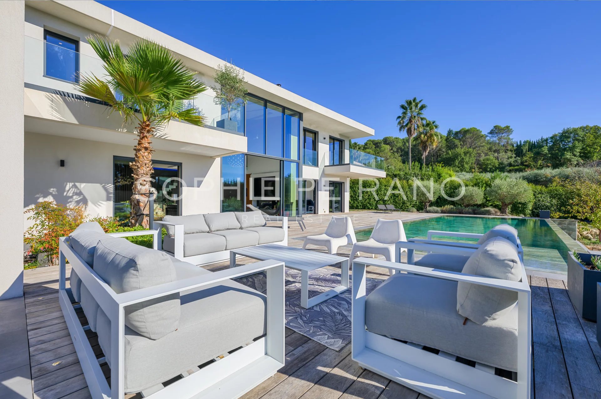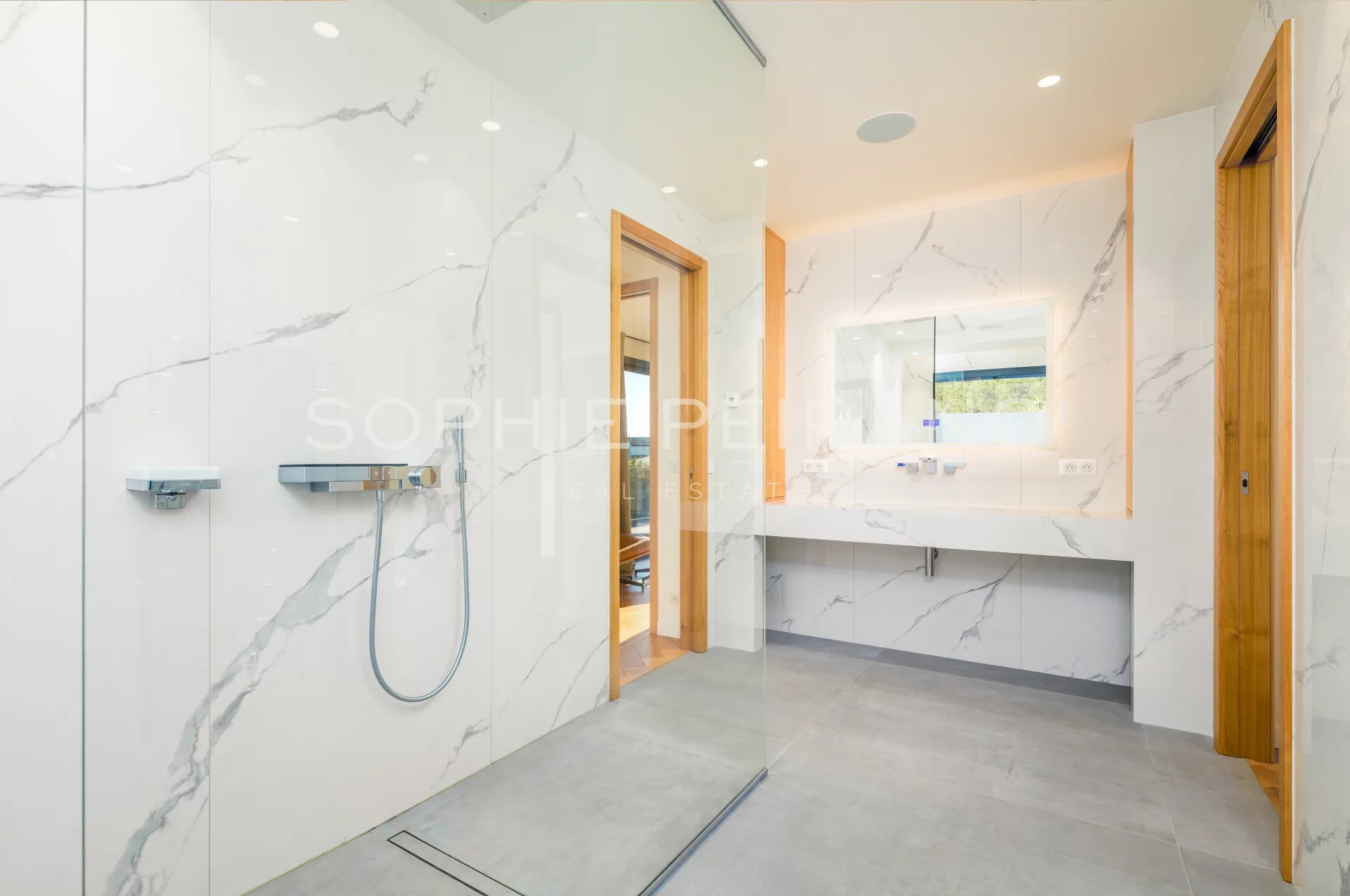 Nestled in a peaceful residential setting and ideally oriented to the southwest, this newly built contemporary villa stands out for its refined architecture and high-end features.