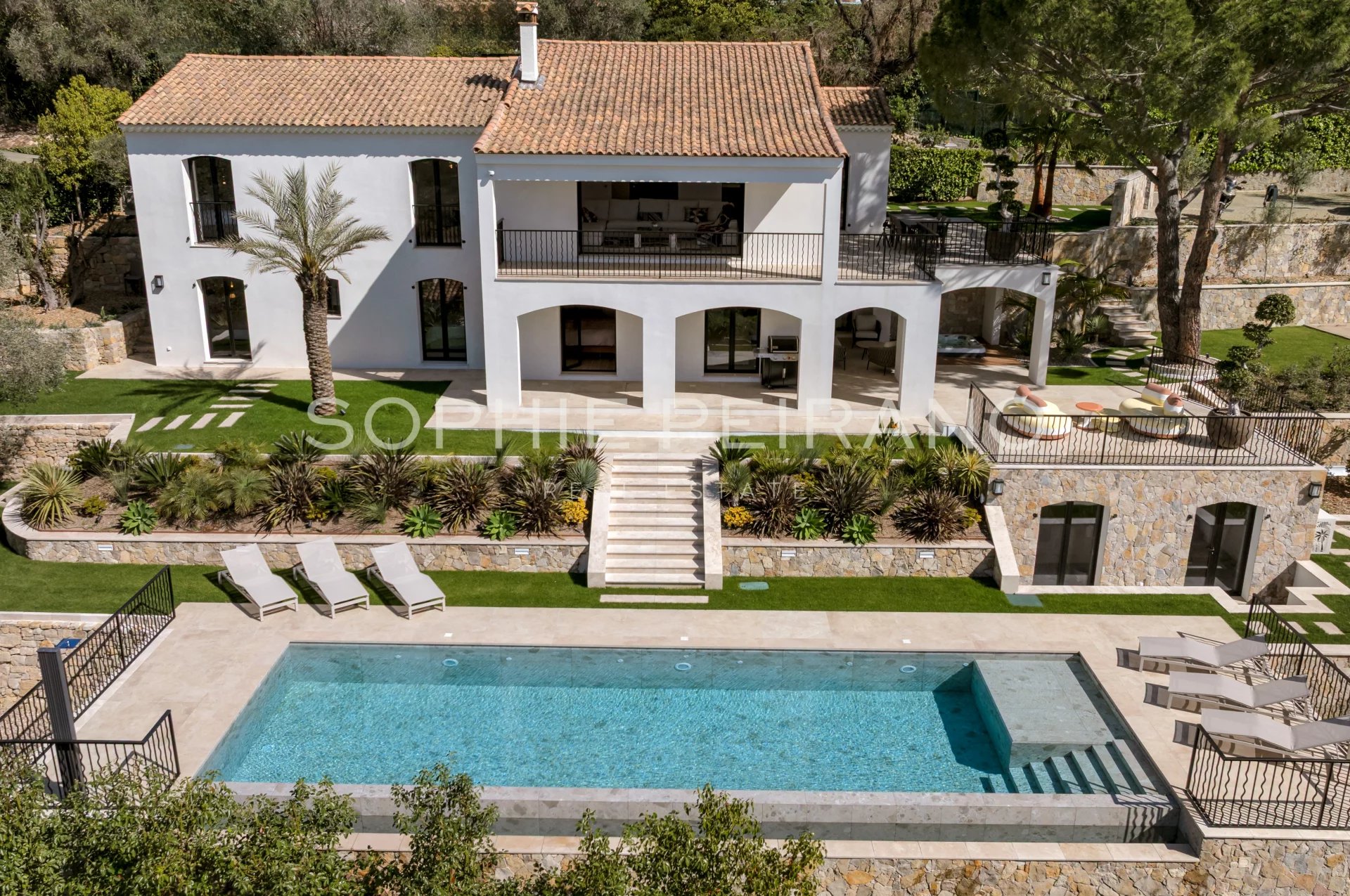 Ideally located on the heights of Le Cannet, in a მშვიდ and green setting, this contemporary villa of approximately 280 sqm has been fully renovated using quality materials.