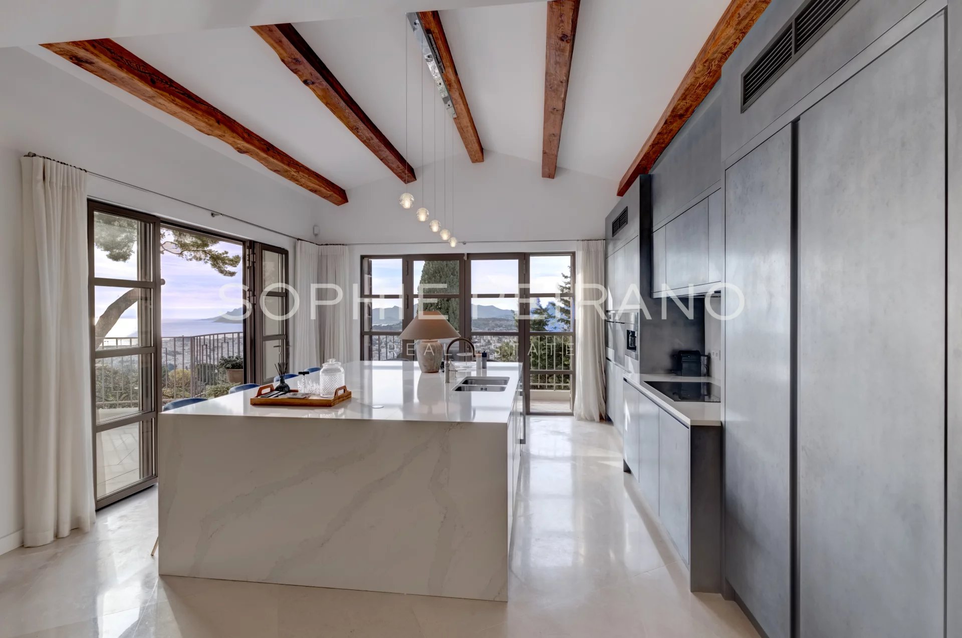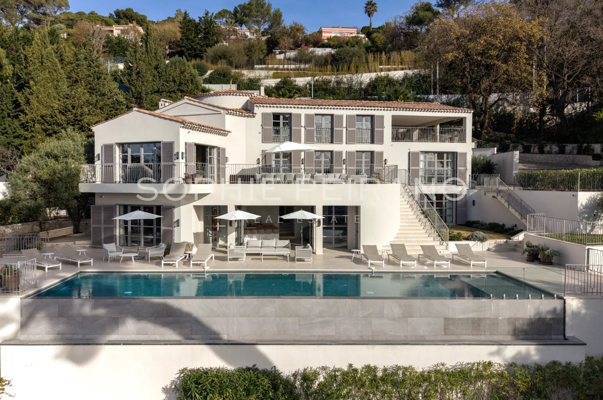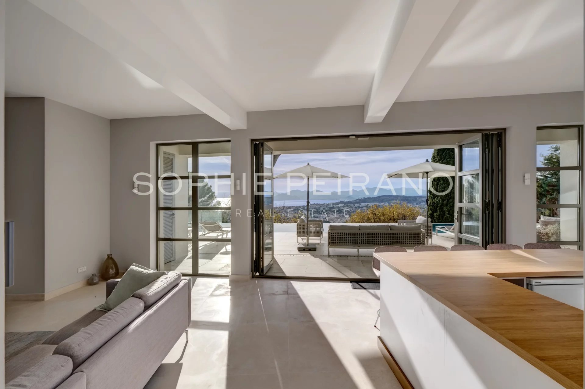 Située dans le secteur recherché de la Californie, cette villa entièrement rénovée avec des matériaux haut de gamme offre une vue mer panoramique sur la baie de Cannes.
