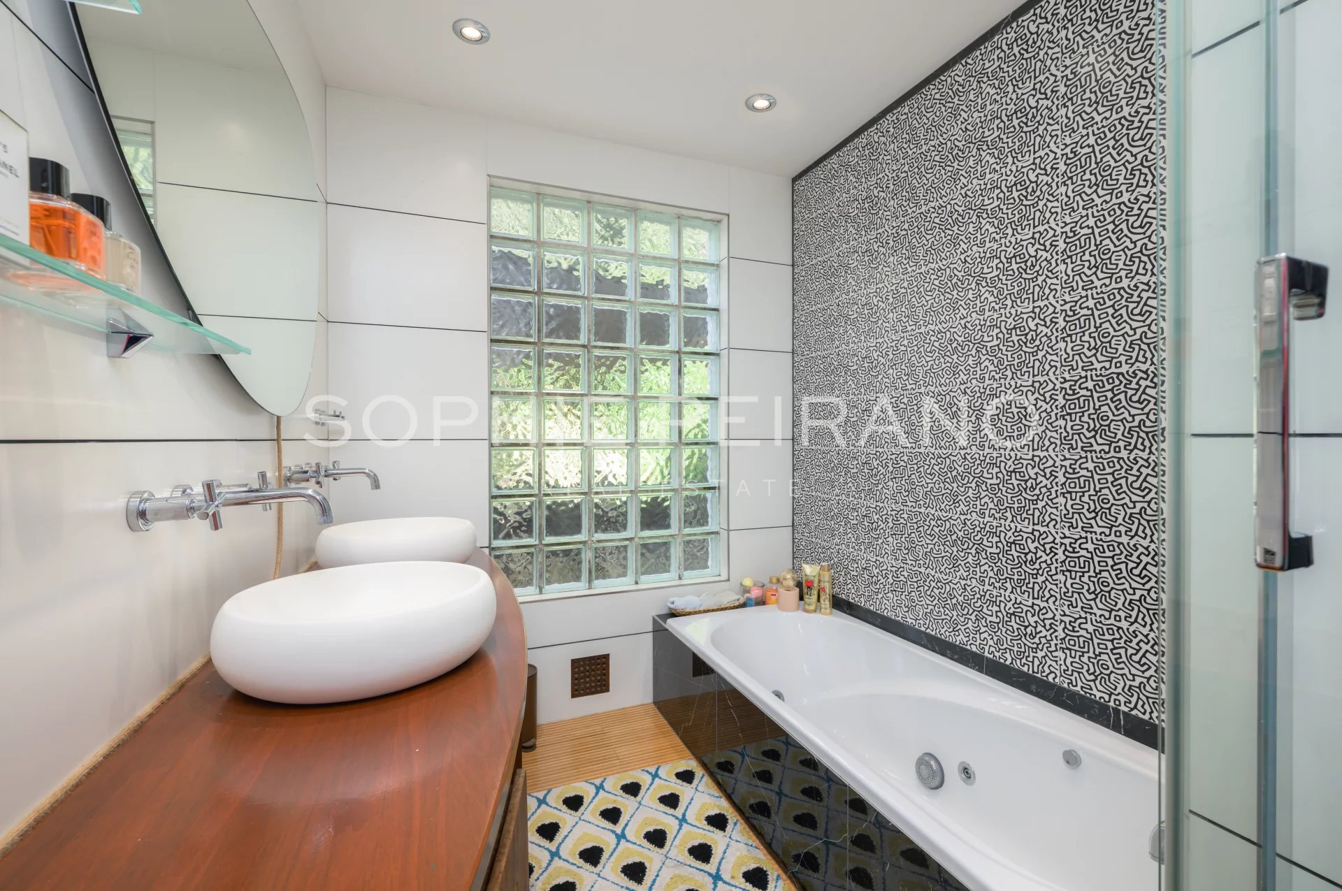 À l’étage inférieur, deux chambres en suite disposent chacune d’un accès direct au jardin.